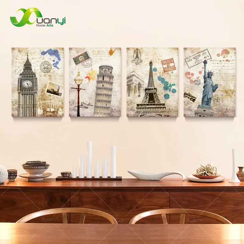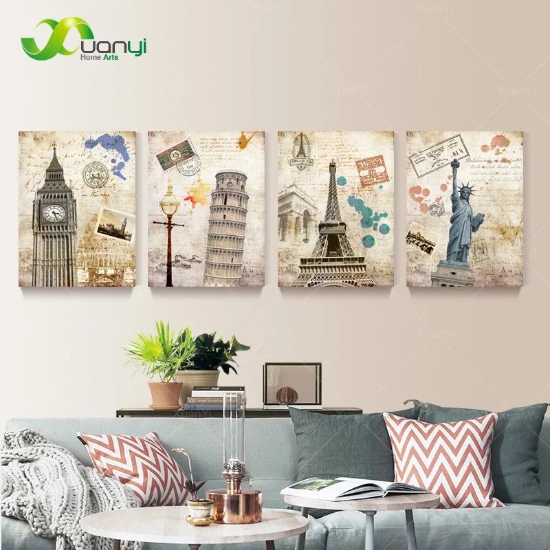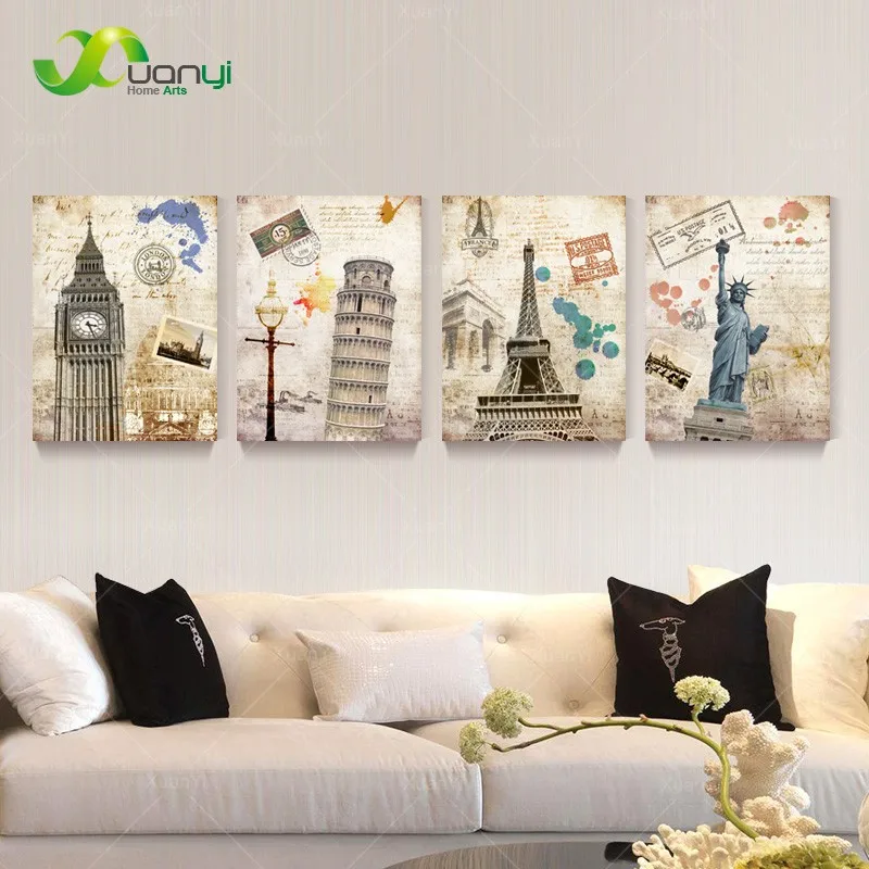 Винтажная абстрактная Статуя Свободы, здание города, картина маслом, Настенная картина для гостиной без рамы PR056