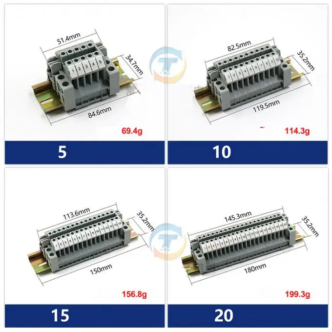 Клеммные колодки UK2.5B с винтовым зажимом для DIN-рейки британской серии