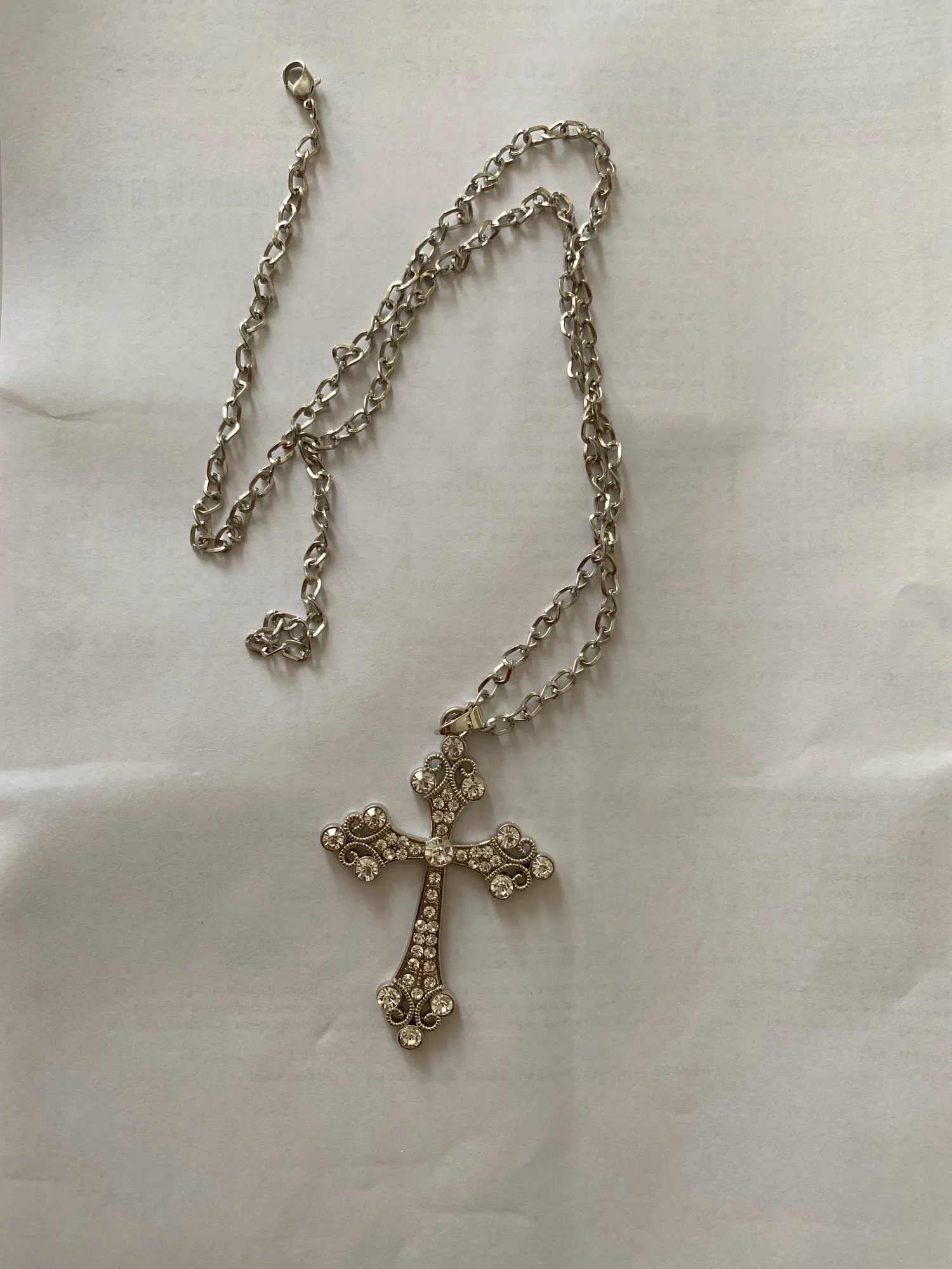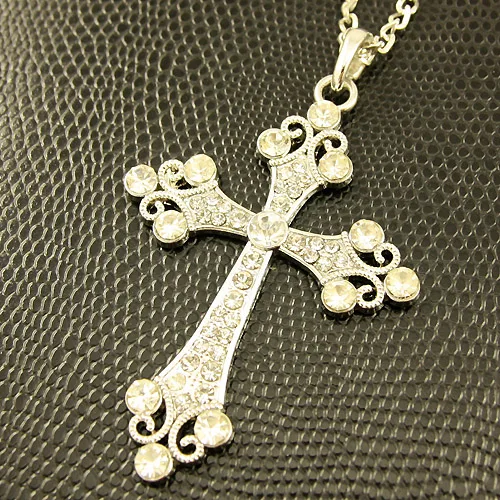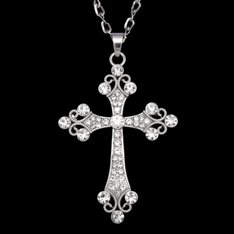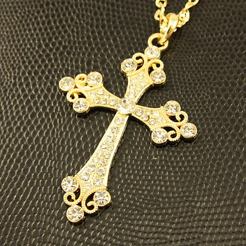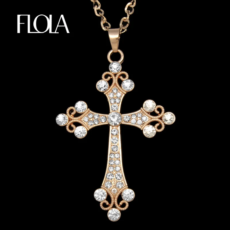 Подвеска FLOLA в стиле хип-хоп с большим крестом nkeh77 Женская, цепочка с кулоном под золото, Подарочная бижутерия в стиле длинное ожерелье со стразами