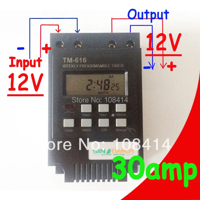 Цифровое реле времени, 30 Ампер, 12 в пост. Тока, 7 дней, 17 ВКЛ.ВЫКЛ., программируемое, 24 часа
