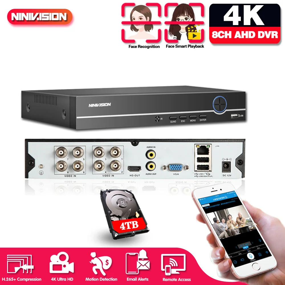 NINIVISION 4CH 8CH 16CH 4K 8MP 5MP 6 в 1 Гибридный AHD DVR AI лицо обнаружения движения человека CCTV видео регистратор наблюдения AHD NVR для системы безопасности камеры