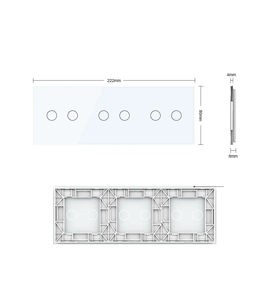 Тройная стеклянная панель Livolo, только 222 мм * 80 мм, роскошное белое стекло для функции настенного выключателя, жемчужная Хрустальная стеклянная панель сделай сам (4 цвета)