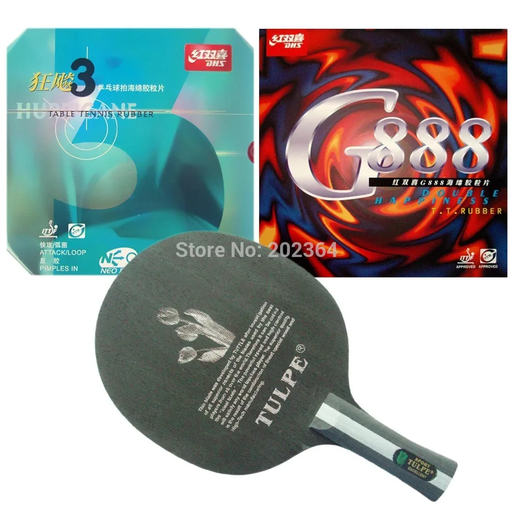 Kokutaku TULPE T-703 лезвие для настольного тенниса Shakehand с DHS G888 и NEO hurcanane3 Резина с губкой длинная Shakehand FL