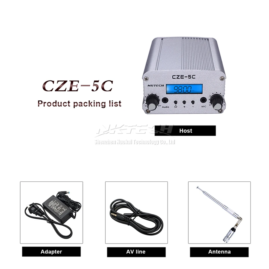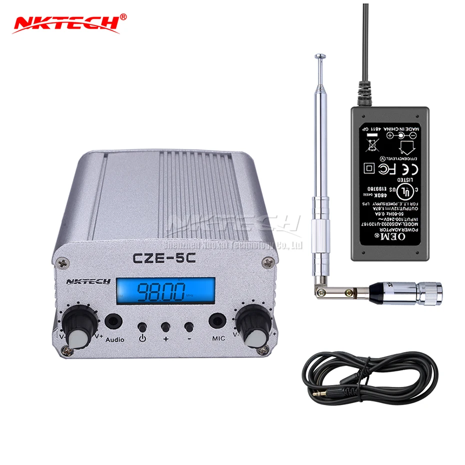 FM-передатчик NKTECH CZE-5C PLL, радиовещательная станция 1 Вт5 Вт, стерео частота 76-108 МГц, профессиональные аудиоусилители для кампуса