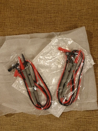 Товар отличного качества. Сопротивление щупов 0.14 Ом (resistance of test leads =R14). Выглядят как на фотографии и мягкие.