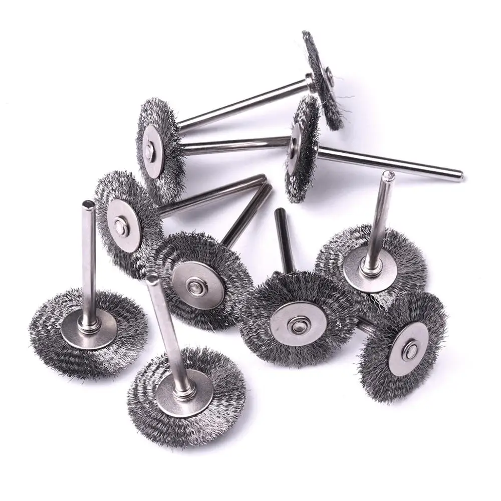 10 шт., стальная проволока 25*35 мм, вращающийся инструмент Dremel 3 мм, хвостовик, проволочные щетки для мини-дрели, полировальный шлифовальный станок, вращающийся инструмент