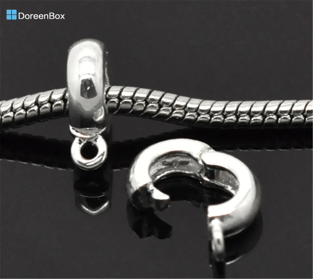 Doreen Box Lovely, серебристые бусины с зажимом и замком, Подходит для европейских шармов 13x10 мм, 10 шт. (B15399)