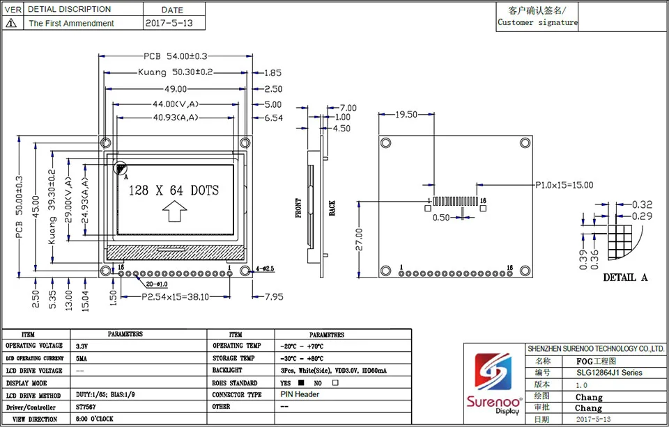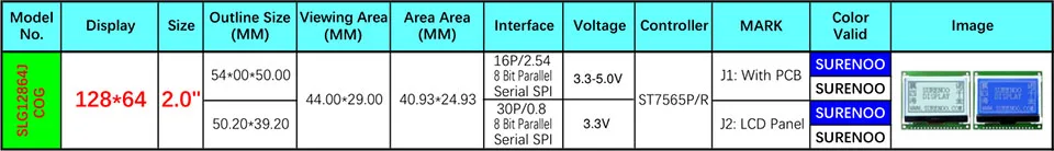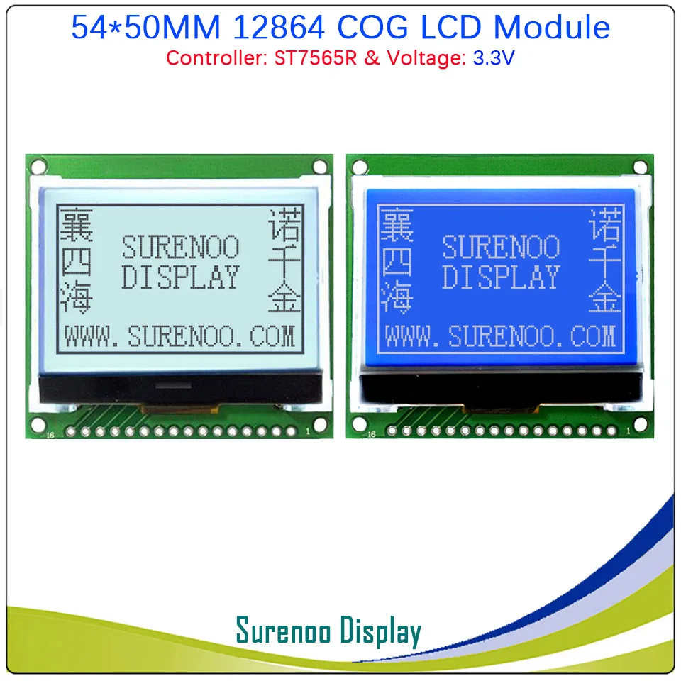 Графический ЖК-модуль 2,0 дюйма, 54 х50 мм, 12864 дюйма, х64, LCM, встроенный ST7565PR, Поддержка параллельногопоследовательного SPI