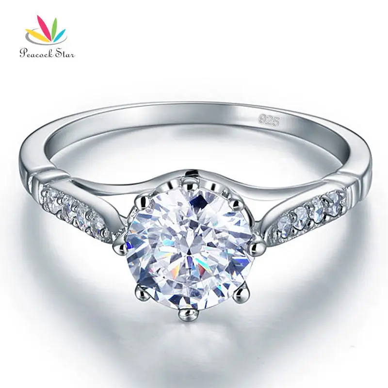 Кольцо с круглой огранкой 2 карата в виде павлина, серебро 925 пробы, для свадьбы, юбилея, помолвки CFR8098