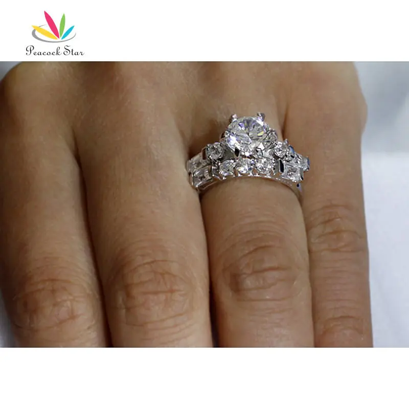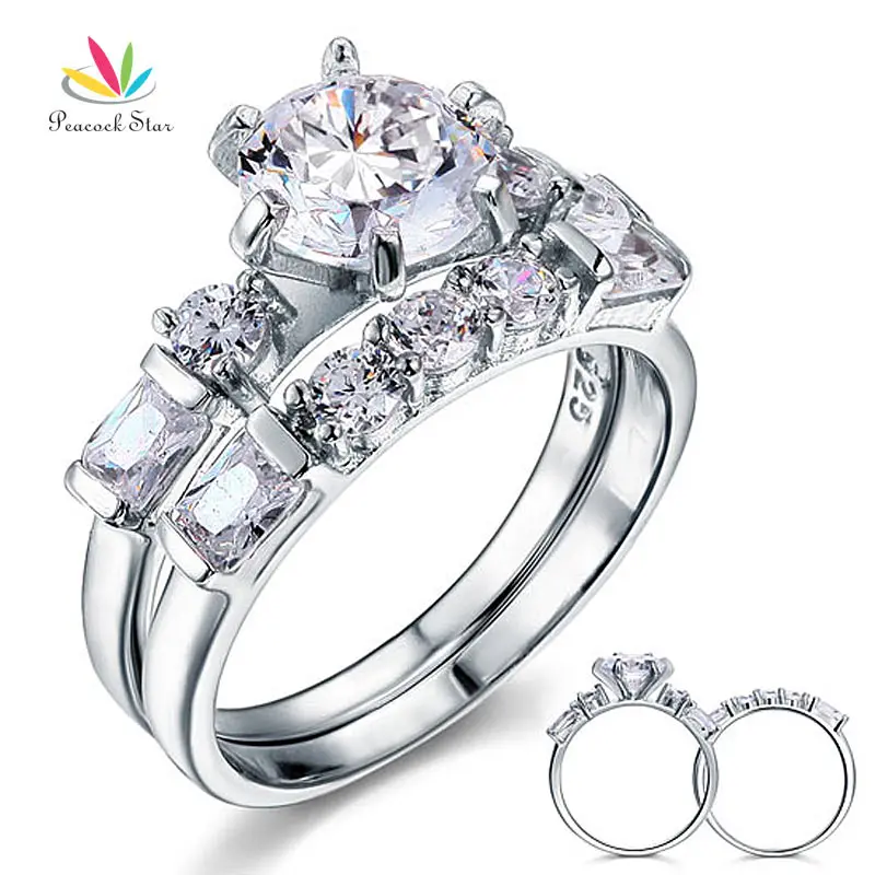 Винтажный Стиль 2 карат Твердое Серебро 925 пробы 2 шт свадебный юбилей обручальное кольцо набор