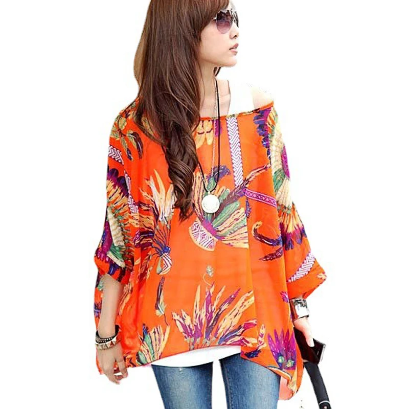 Женские блузки и топы с короткими рукавами, новая модная 2021 Цветочный принт с коротким рукавом летняя блузка размера плюс 4XL 5XL 6XL женские шифоновые рубашки Blusa