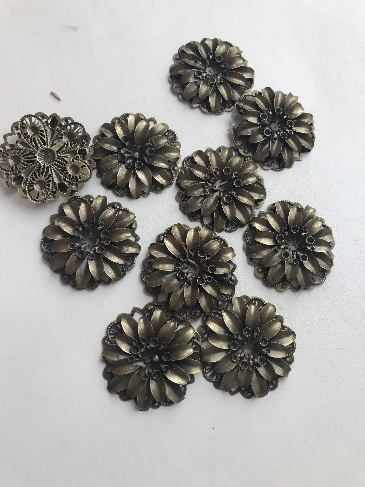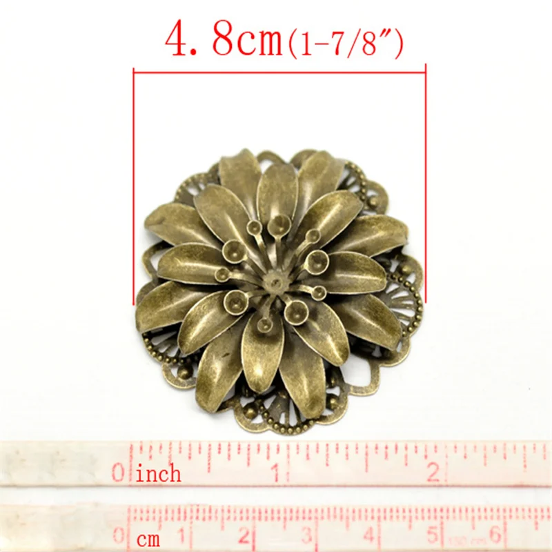 Бесплатная доставка! С бронзовой филигранью под старину цветком приукрашиванием выводов 4,8 см (1-7/8 "), Продан Лот из 10