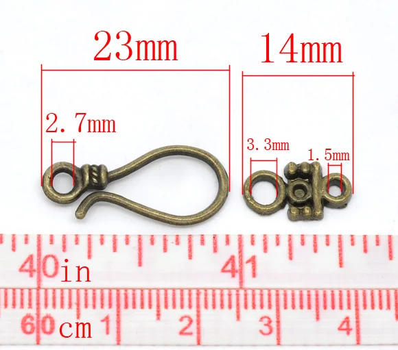 Бесплатная доставка! 50 комплектов бронзовых тоновых застежек-крючков 23x10 мм 14x8 мм