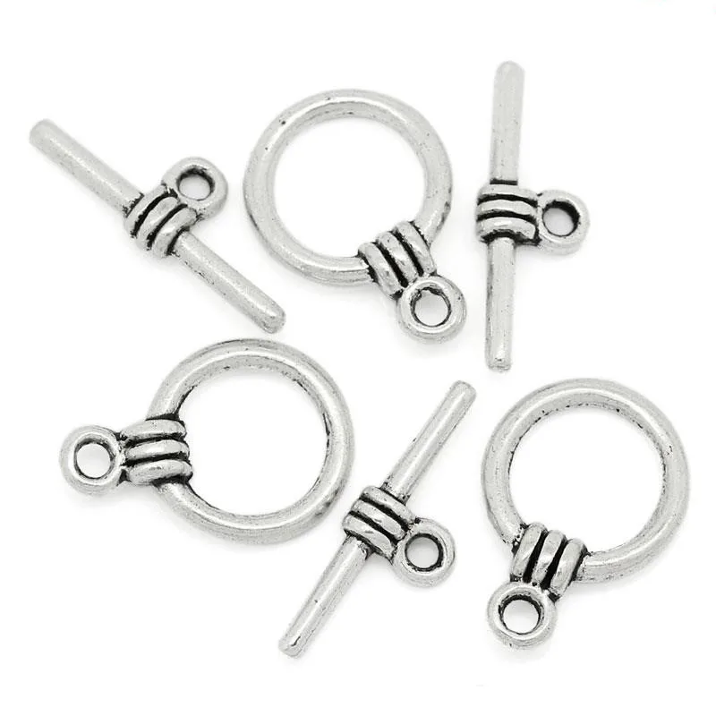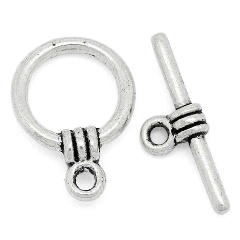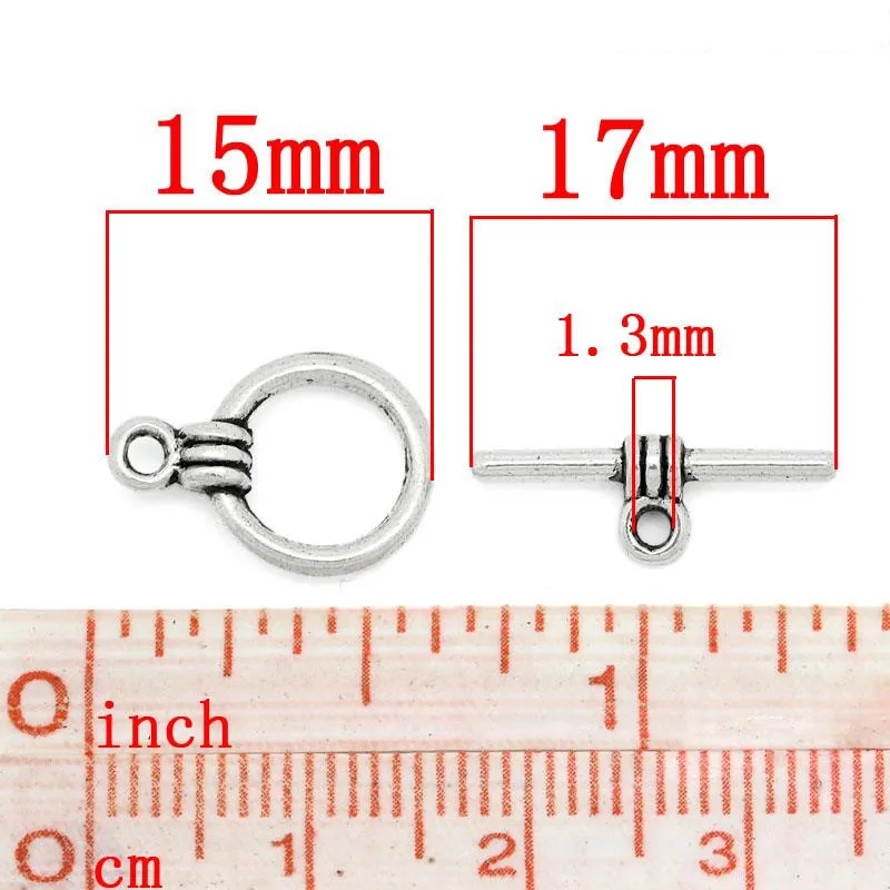 40 наборов Doreen Box Ring Toggle Clasps Znic сплав Серебряный цвет для DIY ювелирных изделий Аксессуары, кольцо: 15x11 мм, бар: 17x6мм