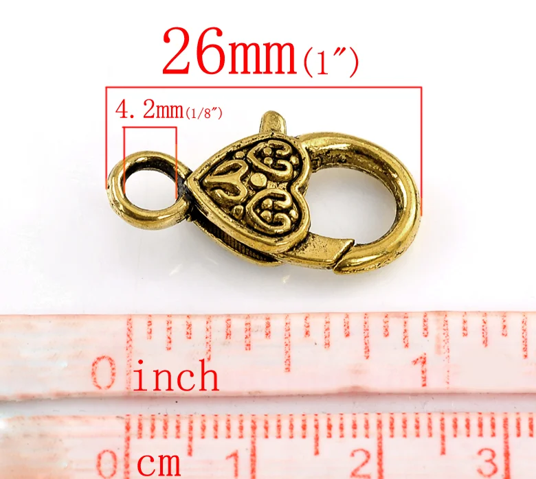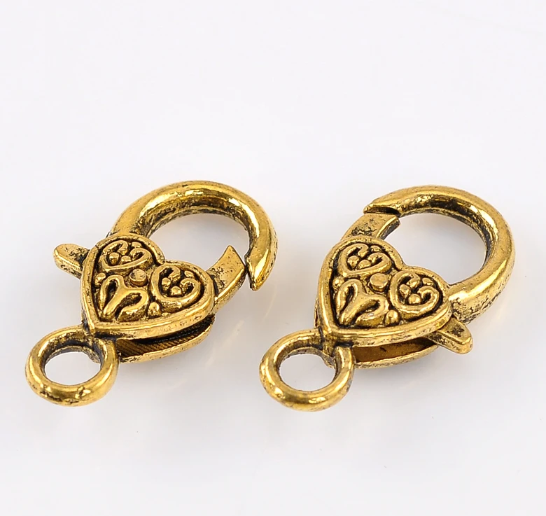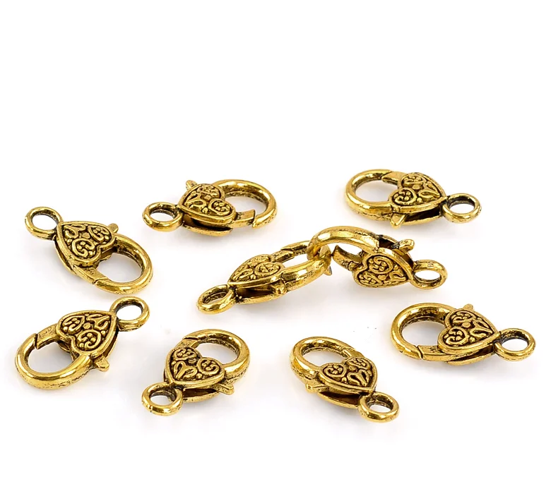 Бесплатная доставка! Застежки-лобстеры Love Heart с золотистым узором, Резные 26x14 мм, 20 шт.