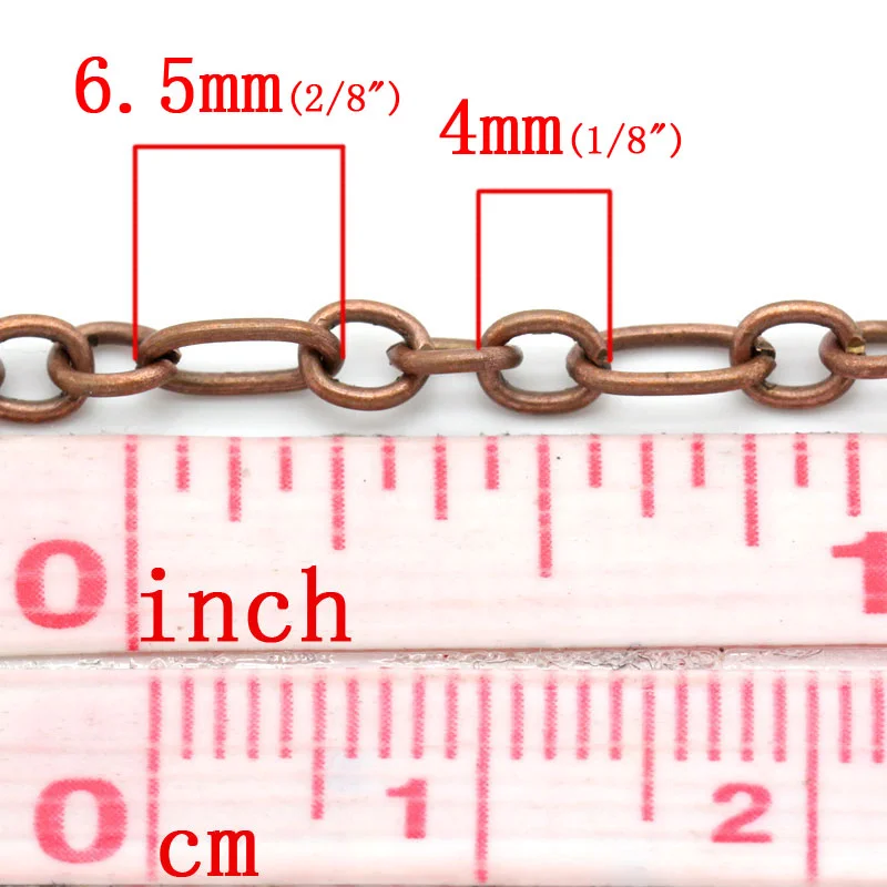 Бесплатная доставка! Звено-спаянные цепи фурнитура античная медь 6,5x3,5 мм (1/4 "x 1/8") 4x3,5 мм (1/8 "x 1/8"),10 м