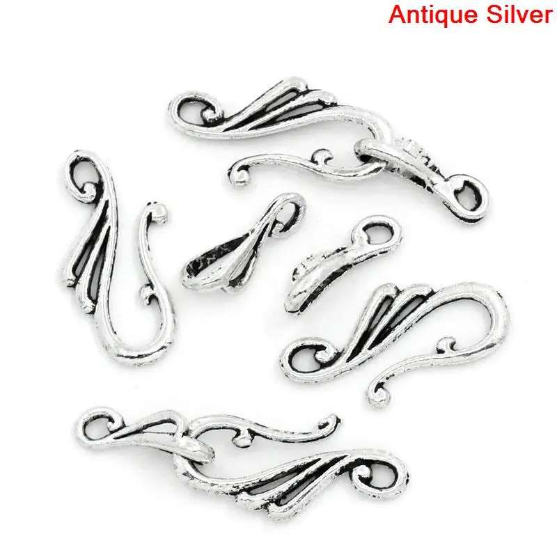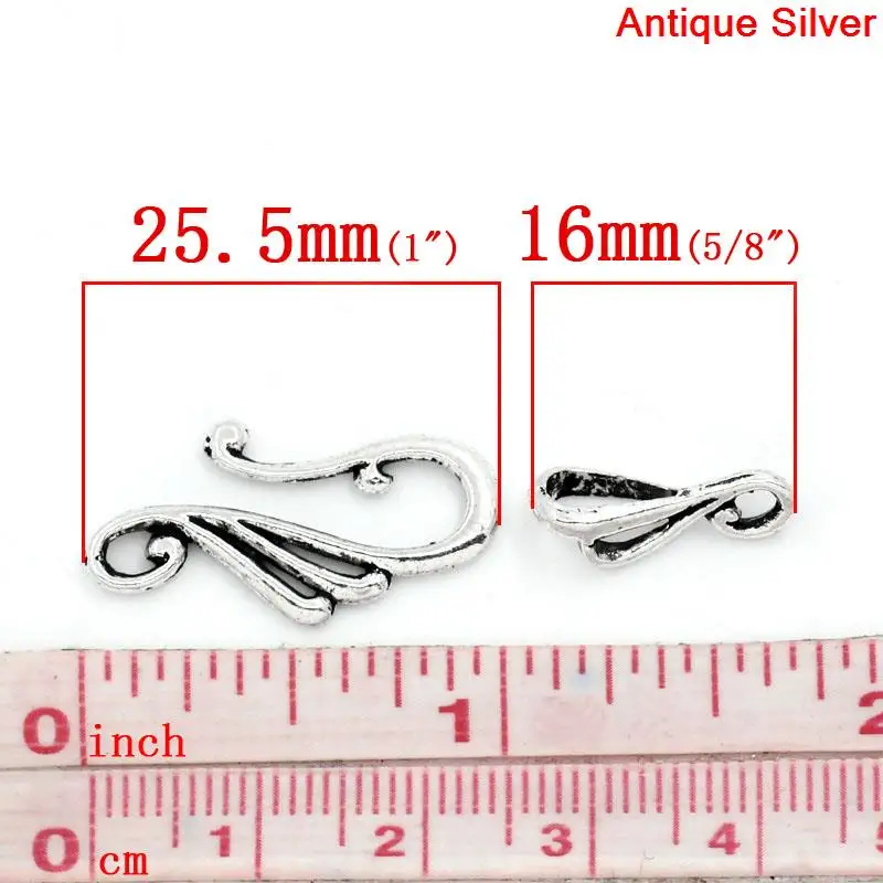 Doreen коробка Прекрасный переключатель застежка крючок серебристый цвет 25,5x12 мм 16x8 мм, 50 наборов (B25384)