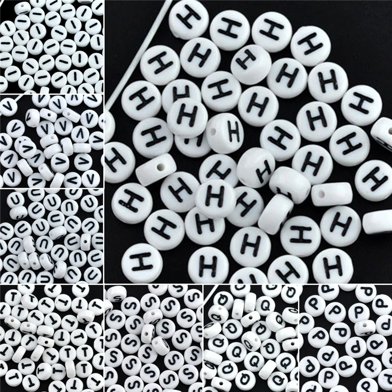 Акриловые бусины-разделители Doreen, 26 букв алфавитабуквы A-Z, плоские, Круглые, белые, для изготовления ювелирных изделий, браслетов, диаметром 7 мм, 500 шт.