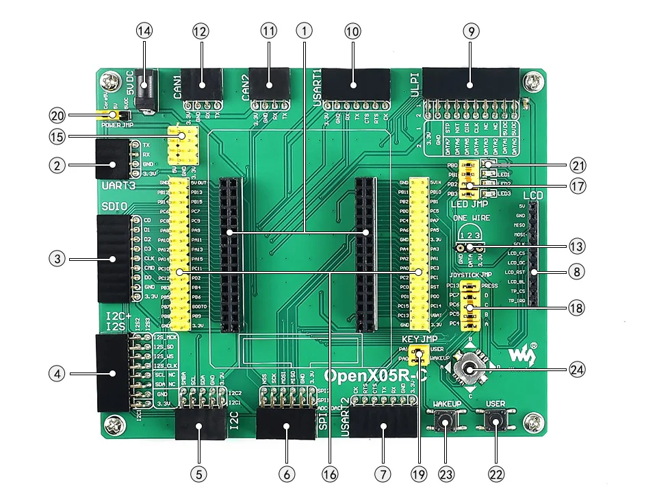 Open405R-C-это макетная плата STM32, разработанная дляSTM32F405RGT6Микроконтроллер состоит из материнской платы и основной платы MCUCore405R.