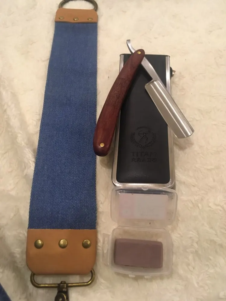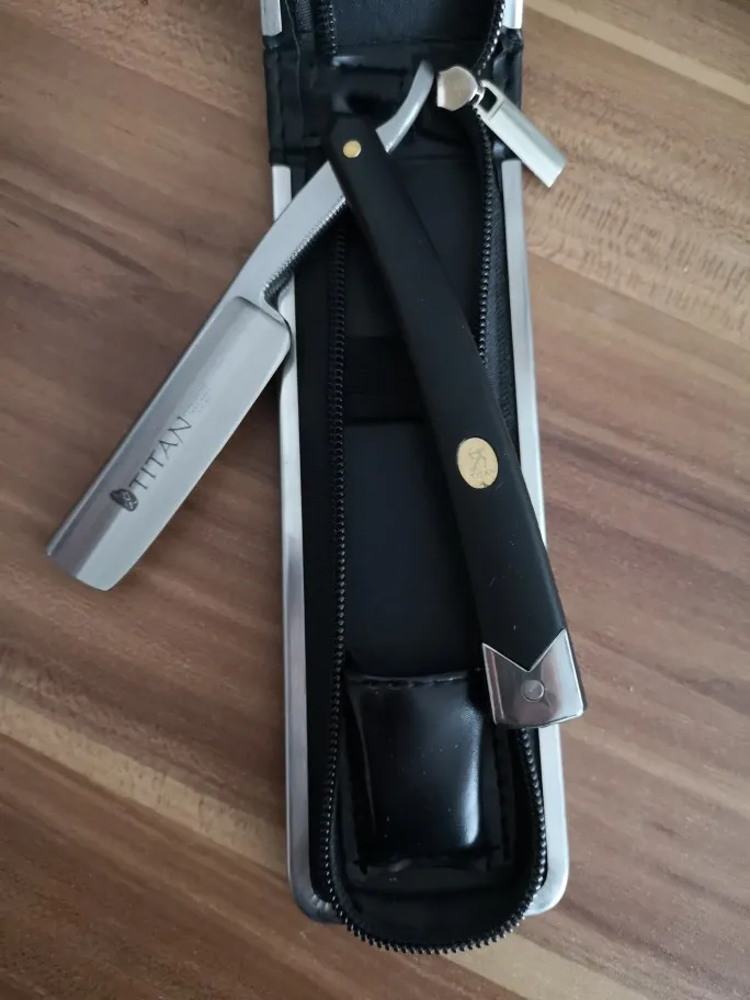 Отличная бритва. В комплекте были: кожаный чехол, ремень для правки и паста
