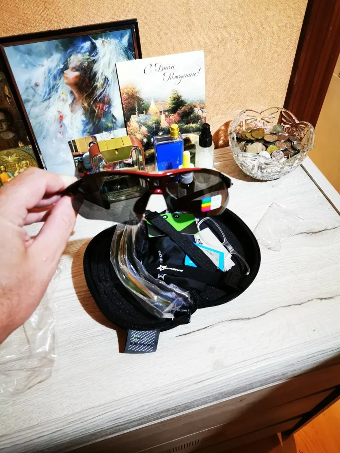Хорошие очки, соответствуют описанию. С очками много линз. Поляризационная линза одна. При заказе не обратил внимание на 2 PCS поэтому пришли двое очков ))