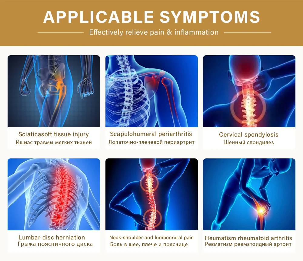 4.Периартрит плеча, грыжа поясничного диска, боль в спине, синяки, ревматоидный артрит, гиперплазия костей