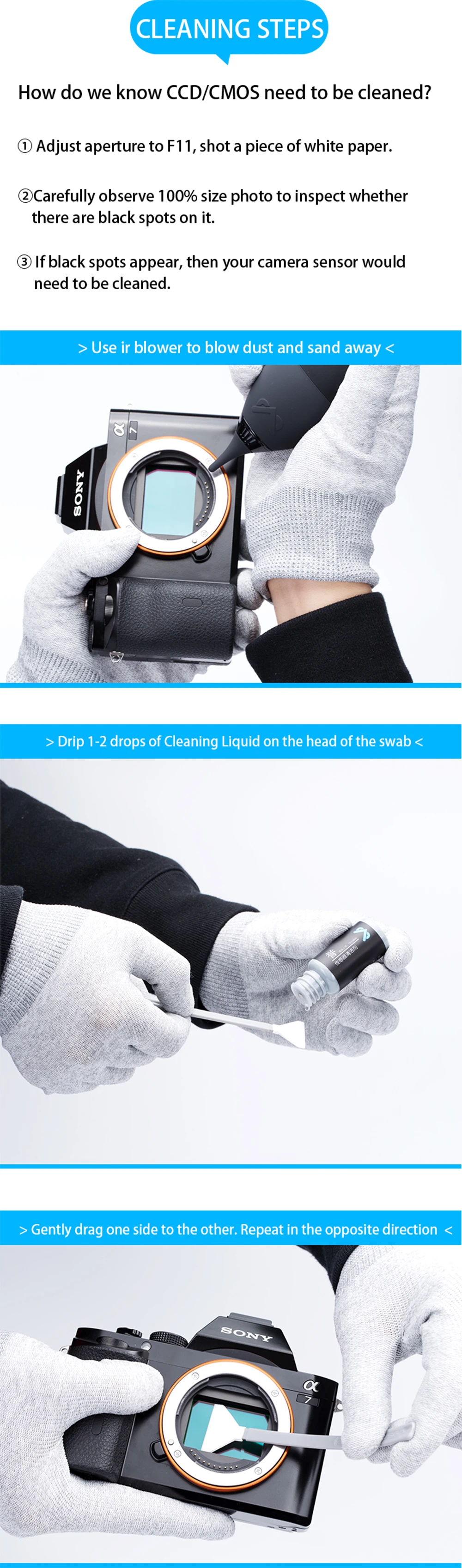 Набор тампонов для очистки датчика камеры VSGO DSLR, 12 шт., жидкостный раствор 15 мл, для очистки цифровой зеркальной камеры Nikon, Canon, Sony
