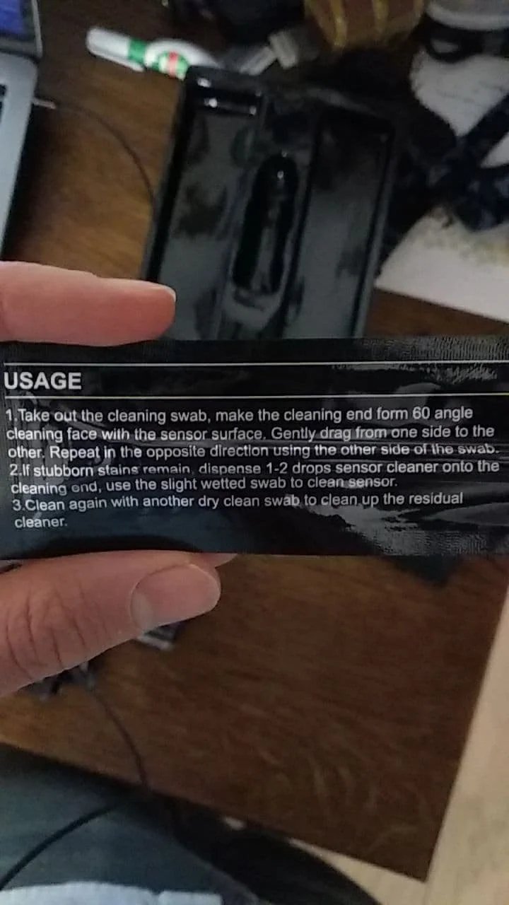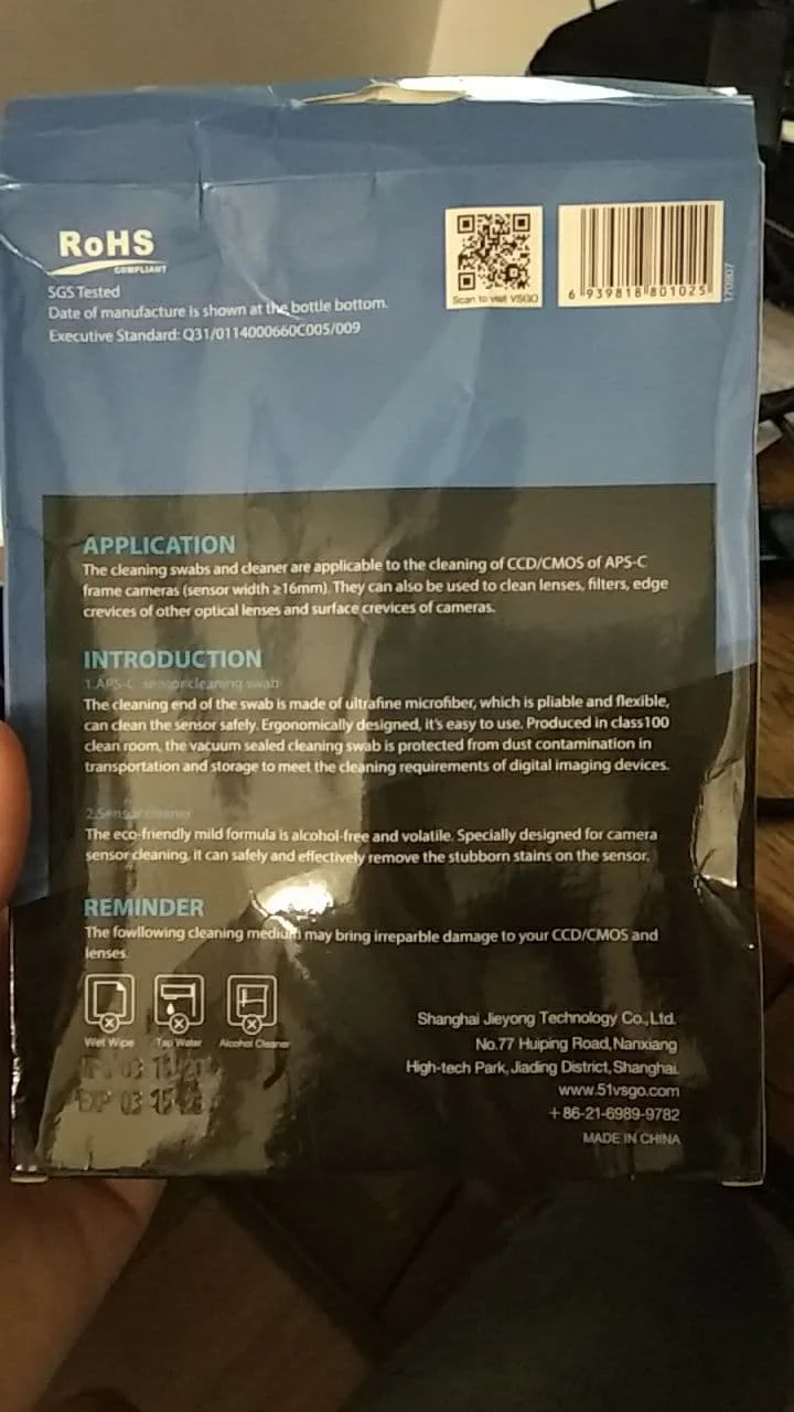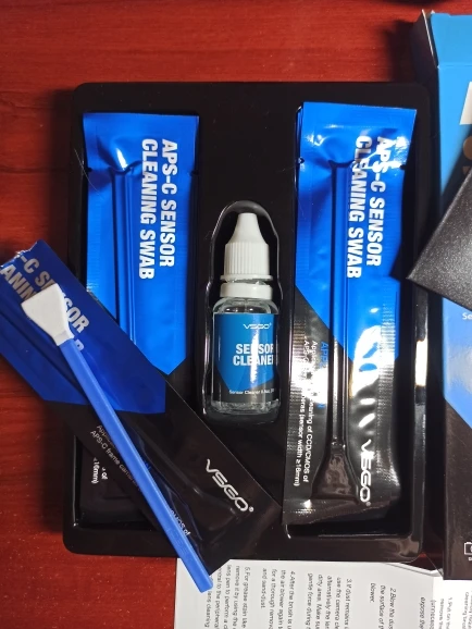 Отличный набор. В индивидуальной упаковке, на упаковке все реквизиты производителя, дата изготовления и срок годности. Чистит матрицу очень хорошо, ни каких разводов или частиц не оставляет. Чистящая жидкость испаряясь полностью, пятен не оставляет. Почистил три фотокамеры, использовал всего две швабры.