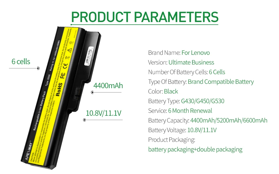Аккумулятор Apexway L08S6Y02 для ноутбука Lenovo 3000 G550 G555 G43...