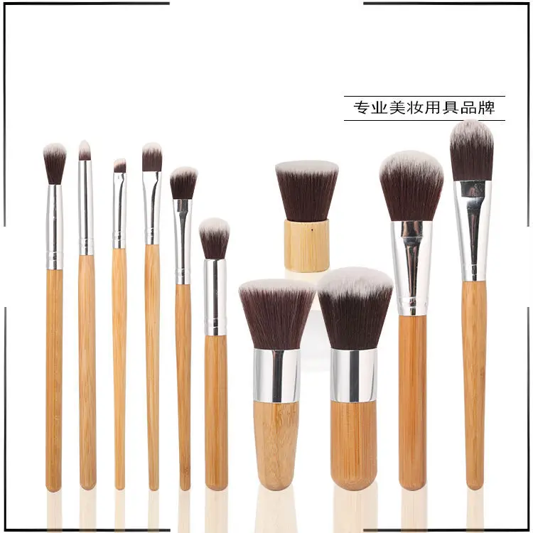 11 шт., набор кистей для макияжа с бамбуковой ручкой, косметические тени для век, тональный крем, консилер, бесплатная доставка