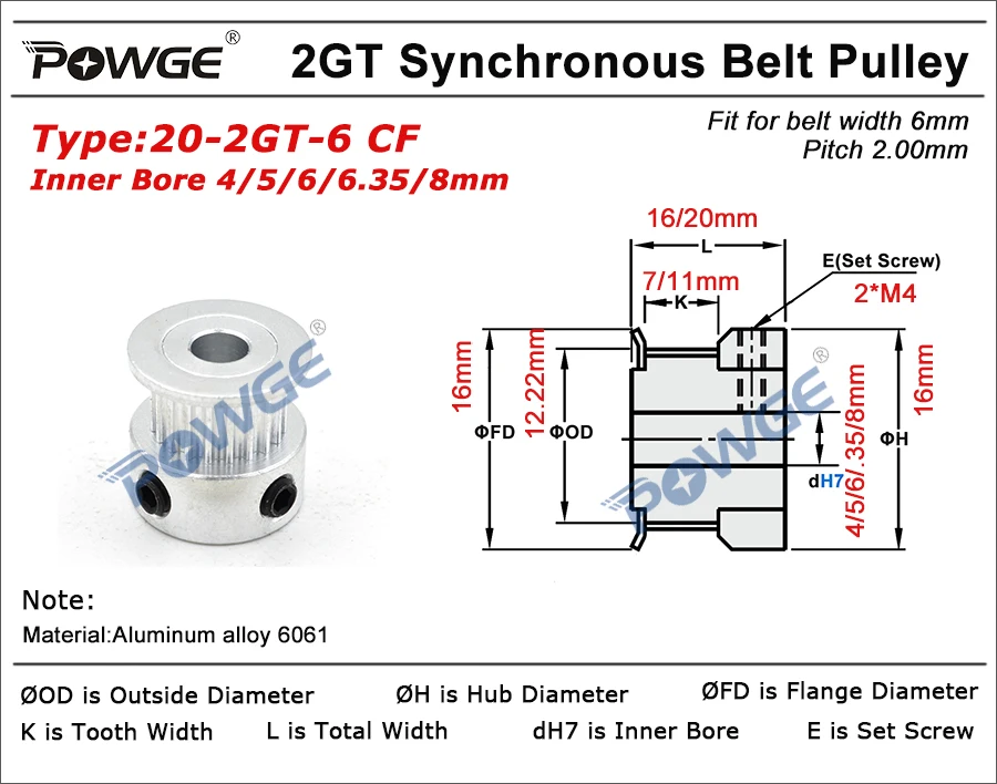20 зубьев 2GT характеристики шкива ГРМ:Шкив GT2 с 20 зубьями или канавками является одним из лучших вариантов для конструкции 3D-принтера. По сравнению с T2.5 или MXL шкив синхронизации, GT2 шкив зуба профиль анти-люфт. Почему? Округлые Зубцы этого зуба и пояса работают вместе дольше, обеспечивая плавный переход между зубами. 2GT используется в линейном приводе с точностью позиционирования малой люфта линейного движения