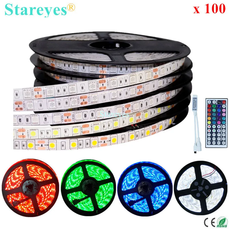 Бесплатная доставка 100 шт. SMD 5050 60 светодиодовм RGB лента 5 м 300 светодиодов 12 В постоянного тока IP65 водонепроницаемая строгая Светодиодная лента одноцветная