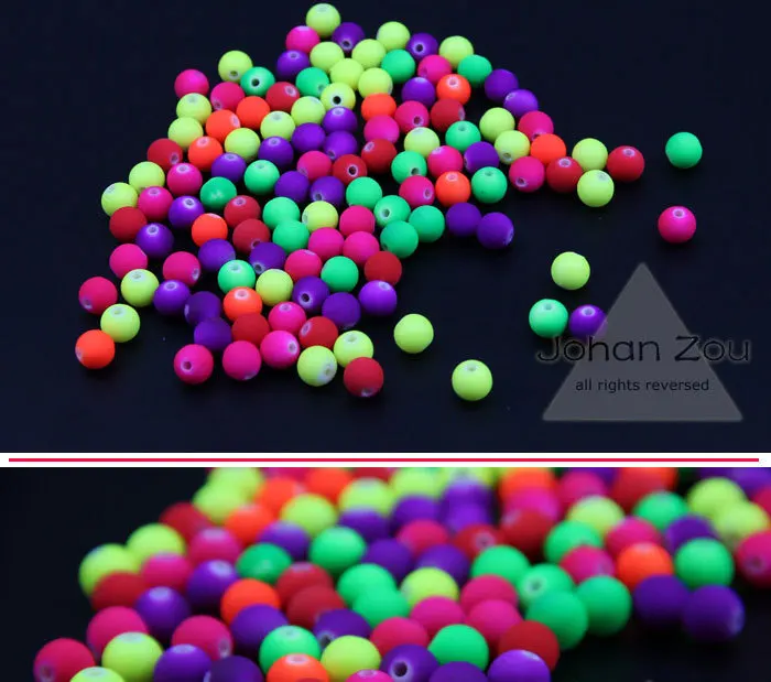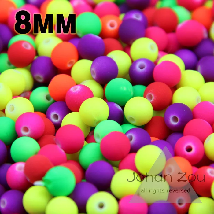 Бусины из 100 акриловой резины, неоновые, матовые, 8 мм, разные ярк...