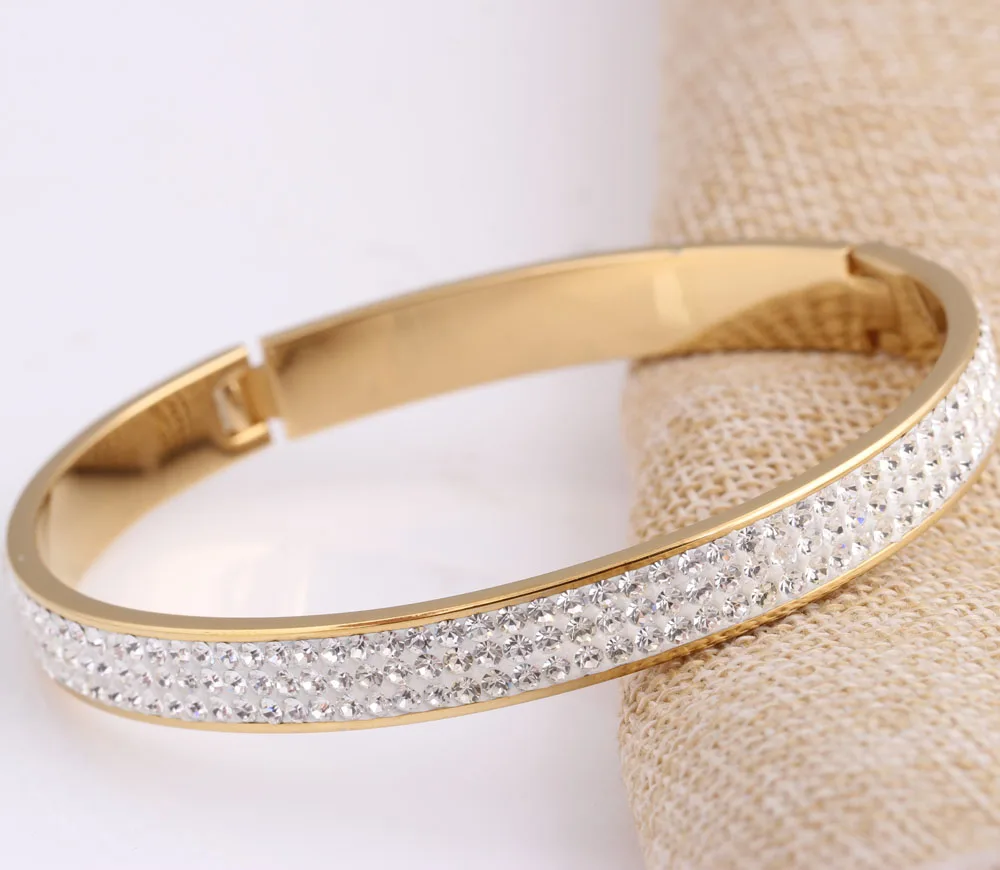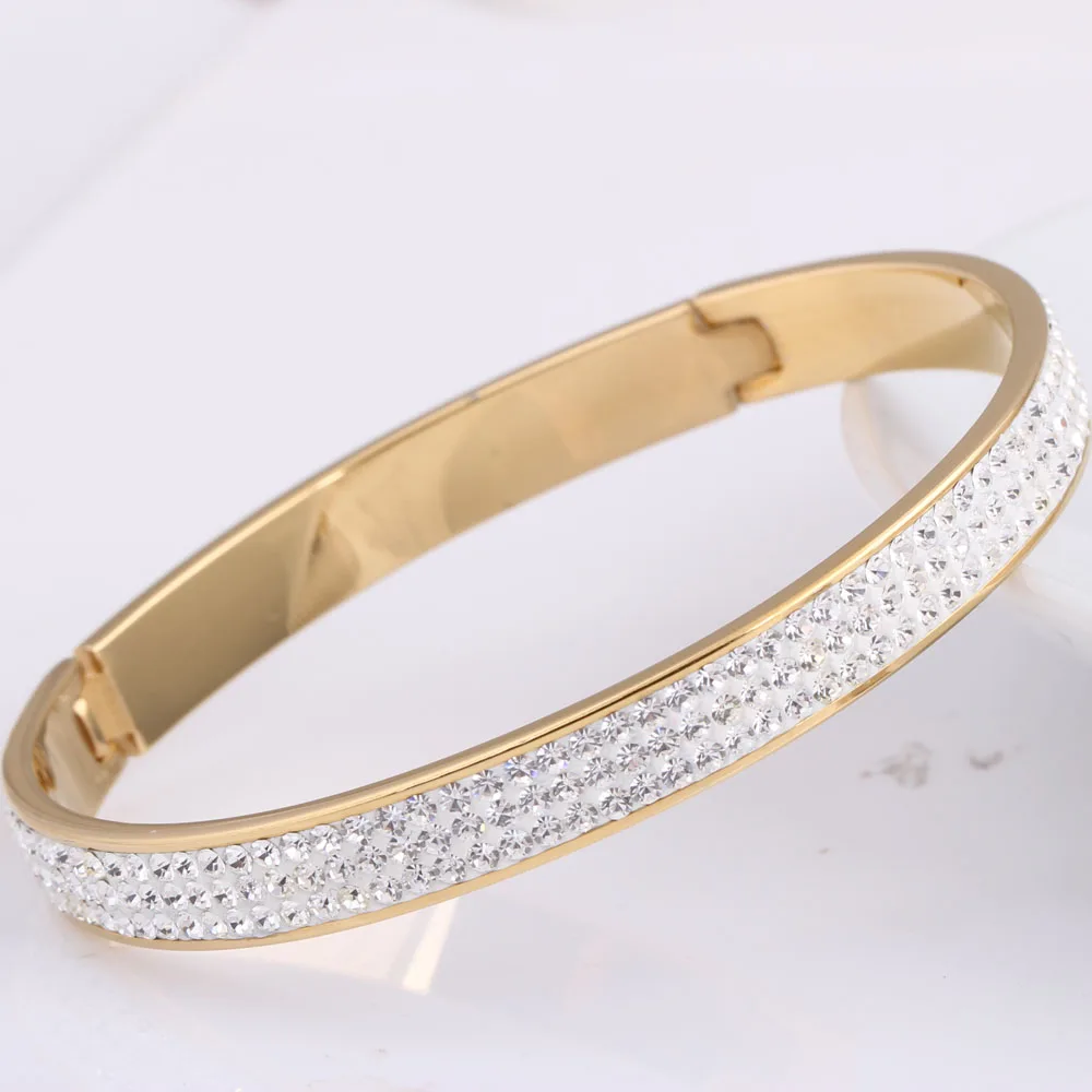 Браслеты золотого цвета из нержавеющей стали с кристаллами для влюбленных женщин