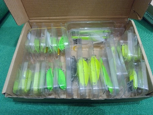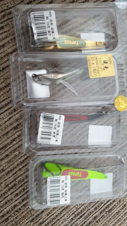 блёсна пришли в коробке. 10-ти граммовая зелёная хрень, ( надеюсь оправдает свою подделку под япаду,покраска слабенькая - зелёная по жёлтому ) и 15-ти гр-ая, серая блестящая, как на фото. Крючки для зелёной желательно побольше. Пока не разловлены.