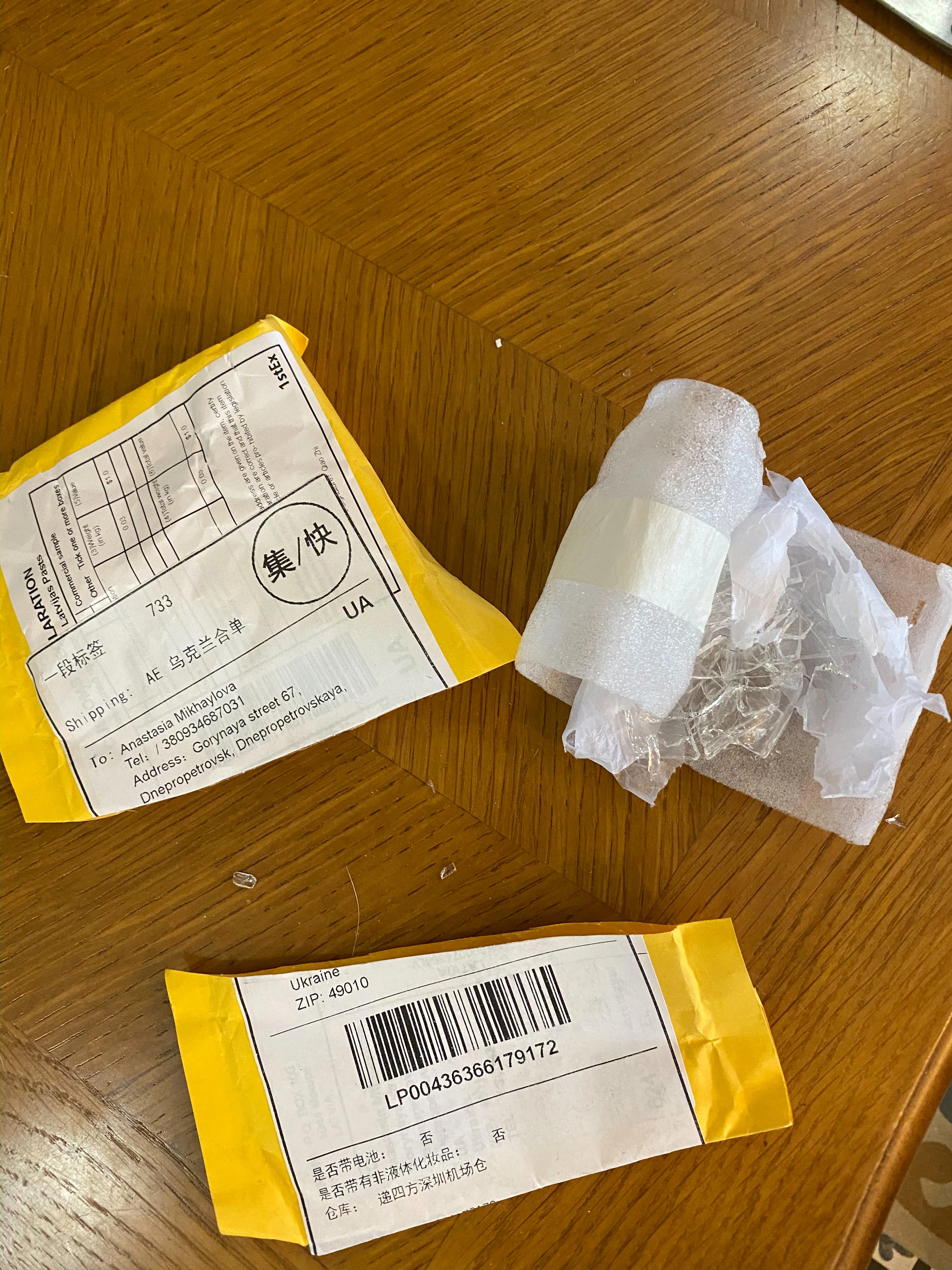 Он прибыл в Грецию через 3 месяца со значительной трещинкой, потому что упаковка была плохой, но, по крайней мере, я получил возмещение