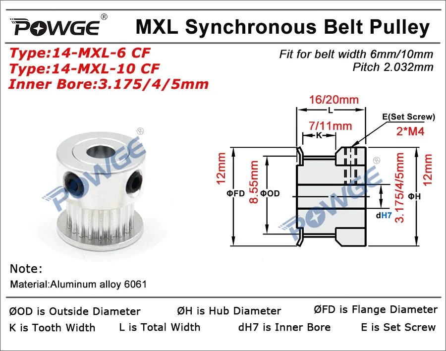 POWGE 48 зубьев MXL Зубчатый шкив Диаметр отверстия 568101214151617...