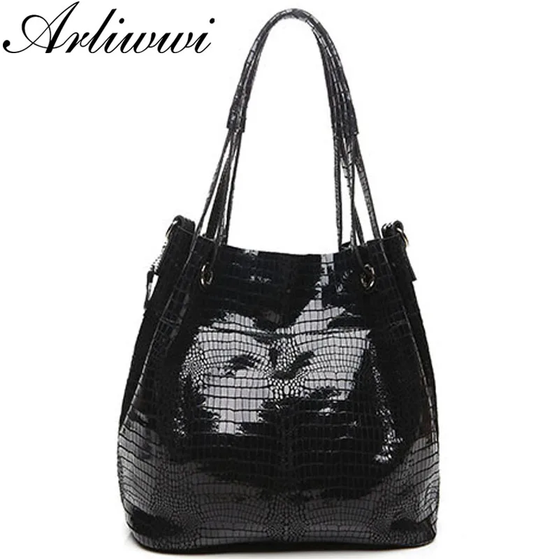 Женская сумка-ведро из натуральной кожи, с ручками и плечевым ремнём