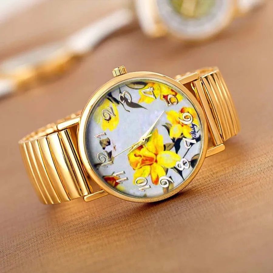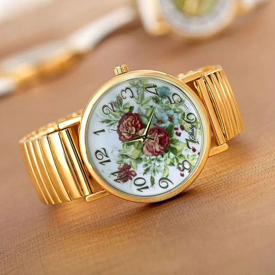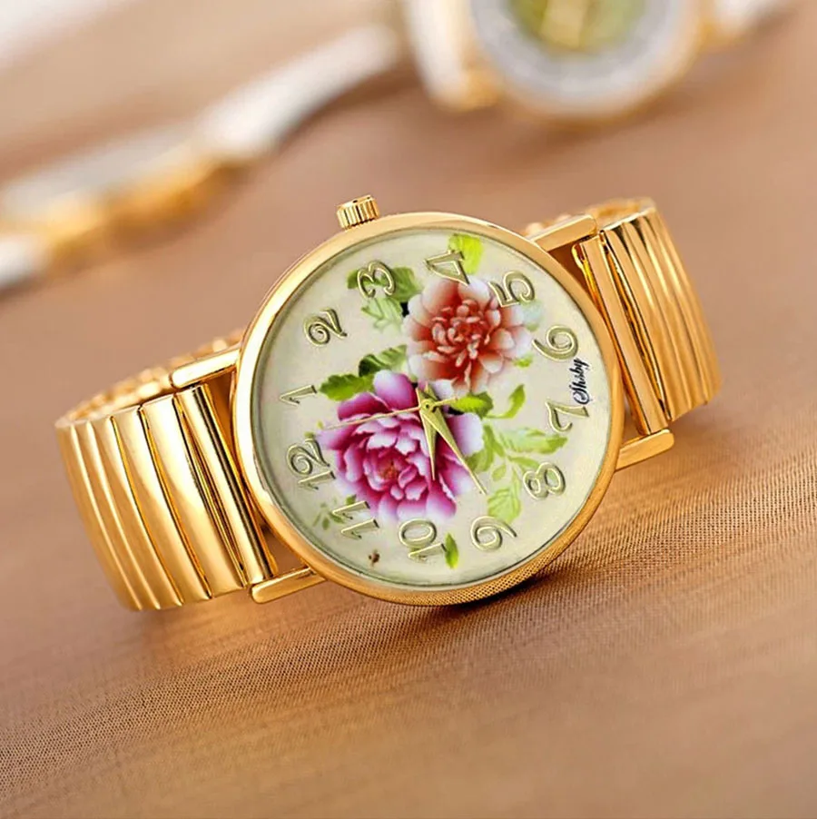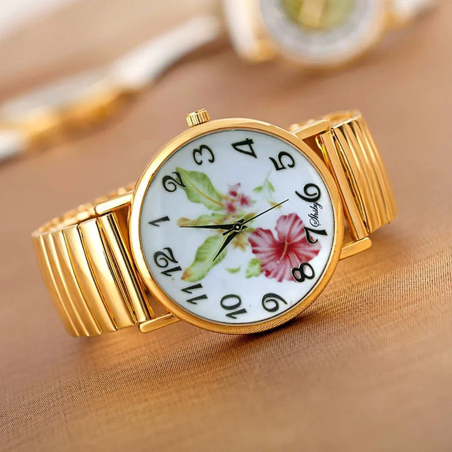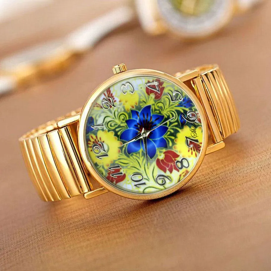 Shsby, лидер продаж, Высококачественные золотые эластичные часы из нержавеющей стали, Женские кварцевые наручные часы, Новое поступление, женские часы с цветами