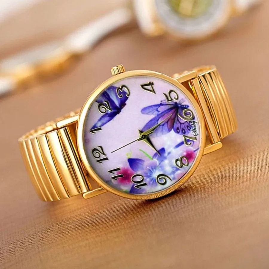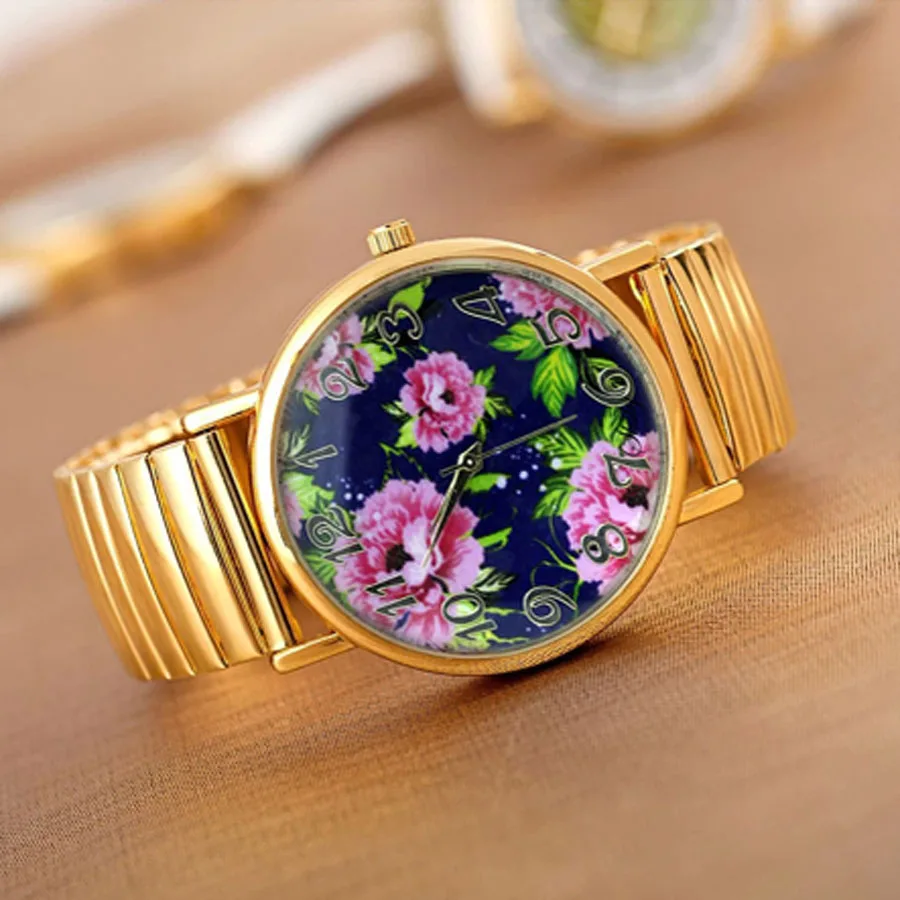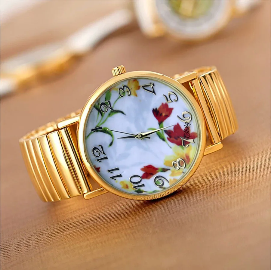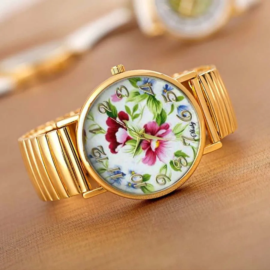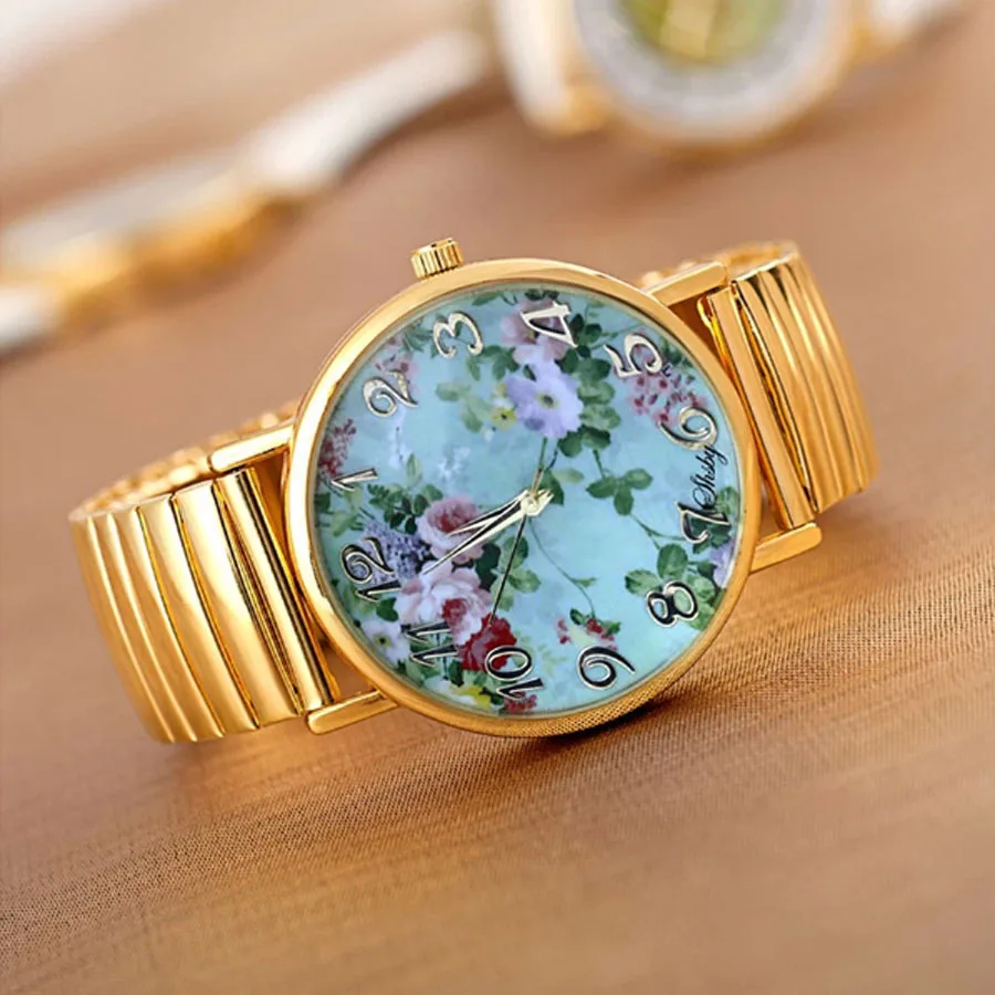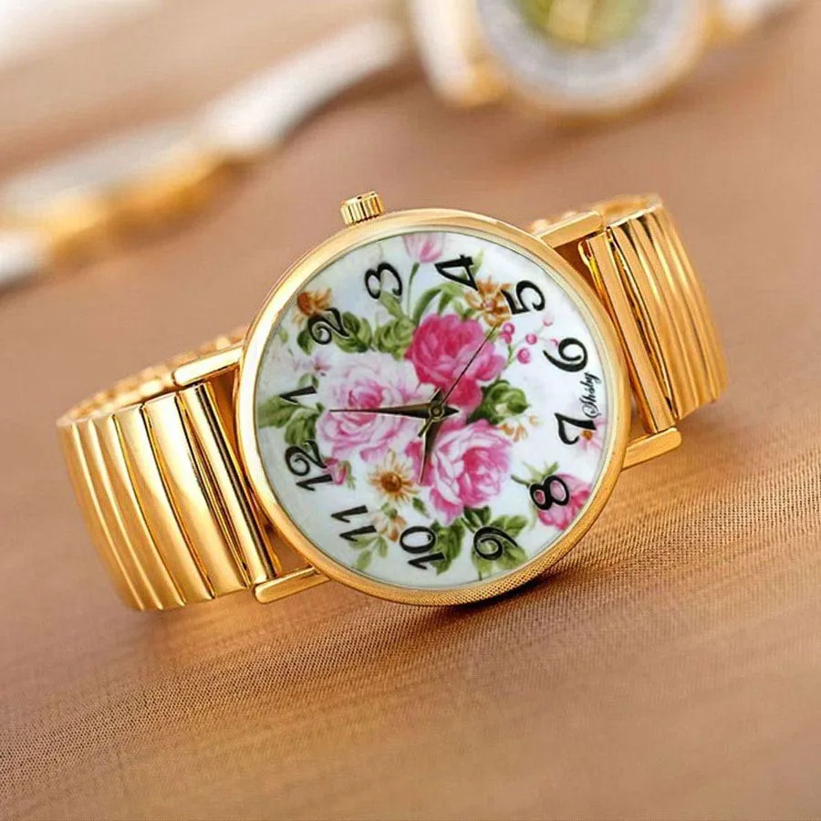 Shsby, лидер продаж, Высококачественные золотые эластичные часы из нержавеющей стали, Женские кварцевые наручные часы, Новое поступление, женские часы с цветами