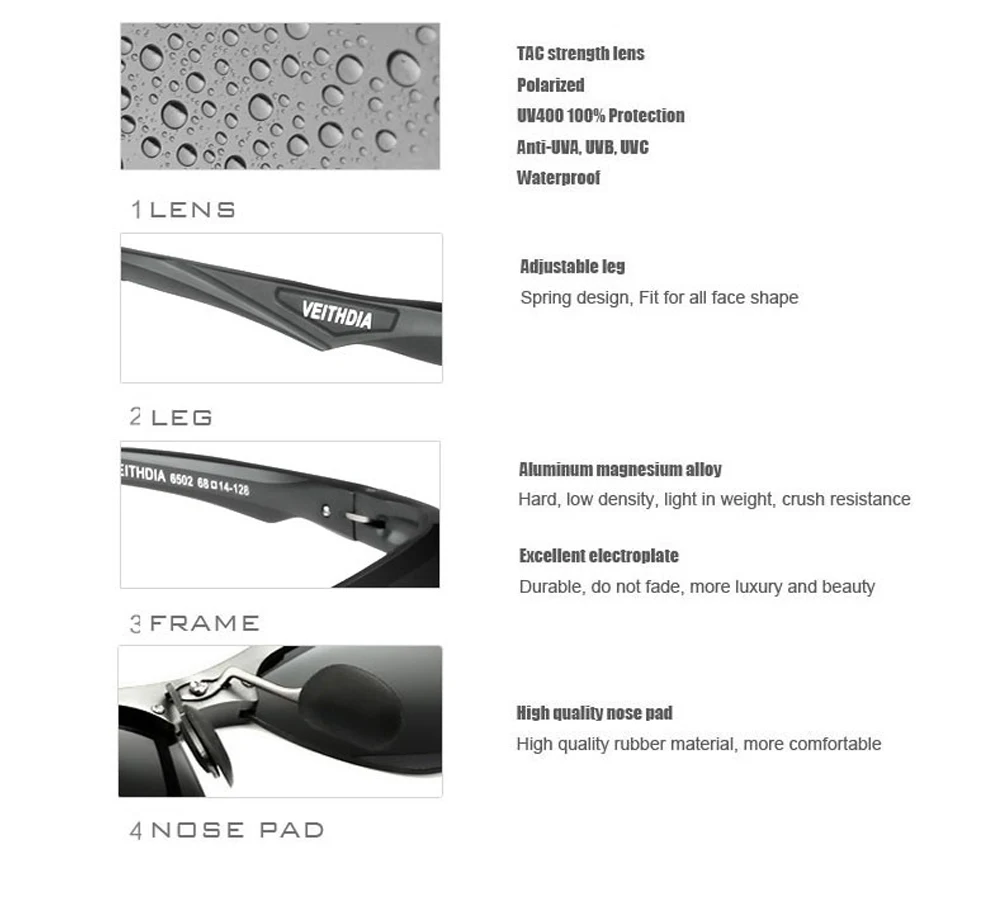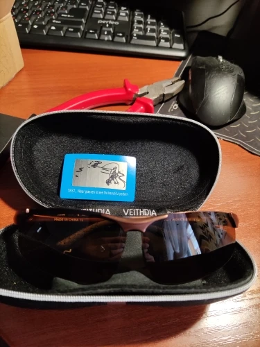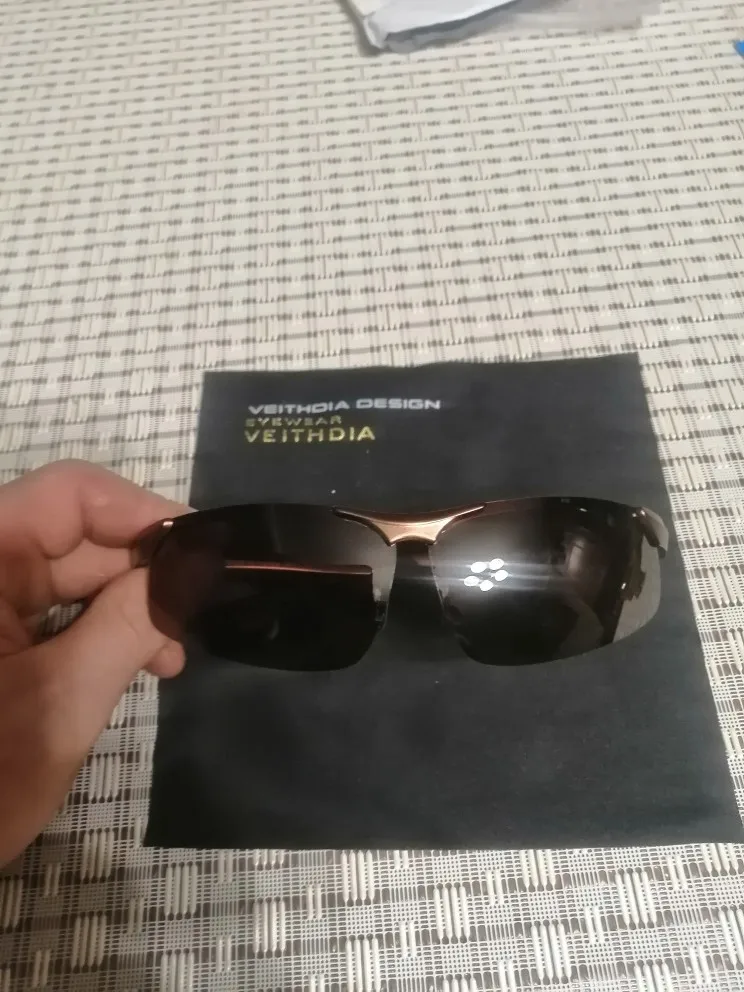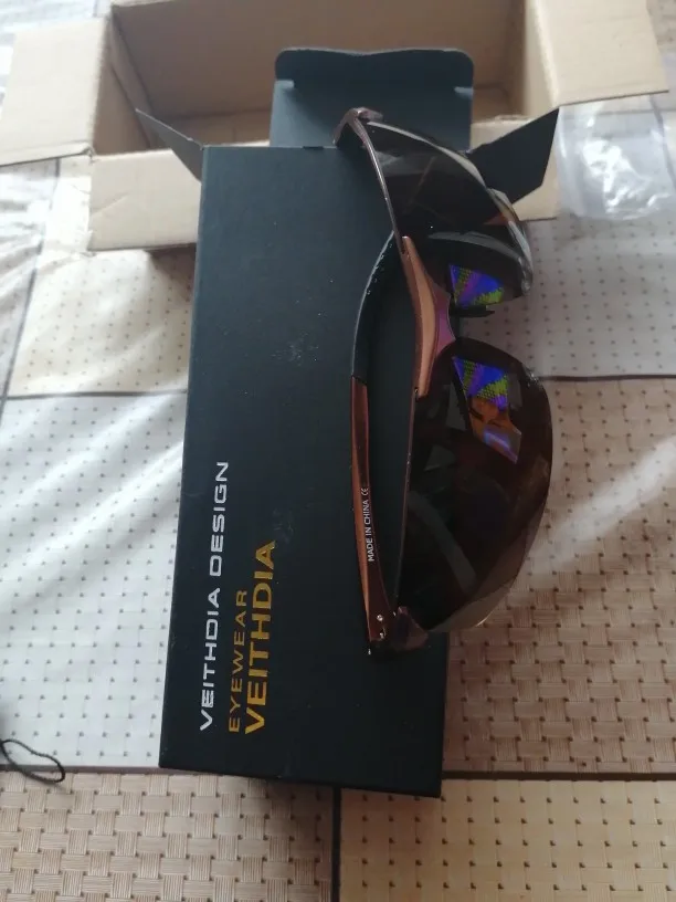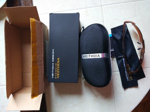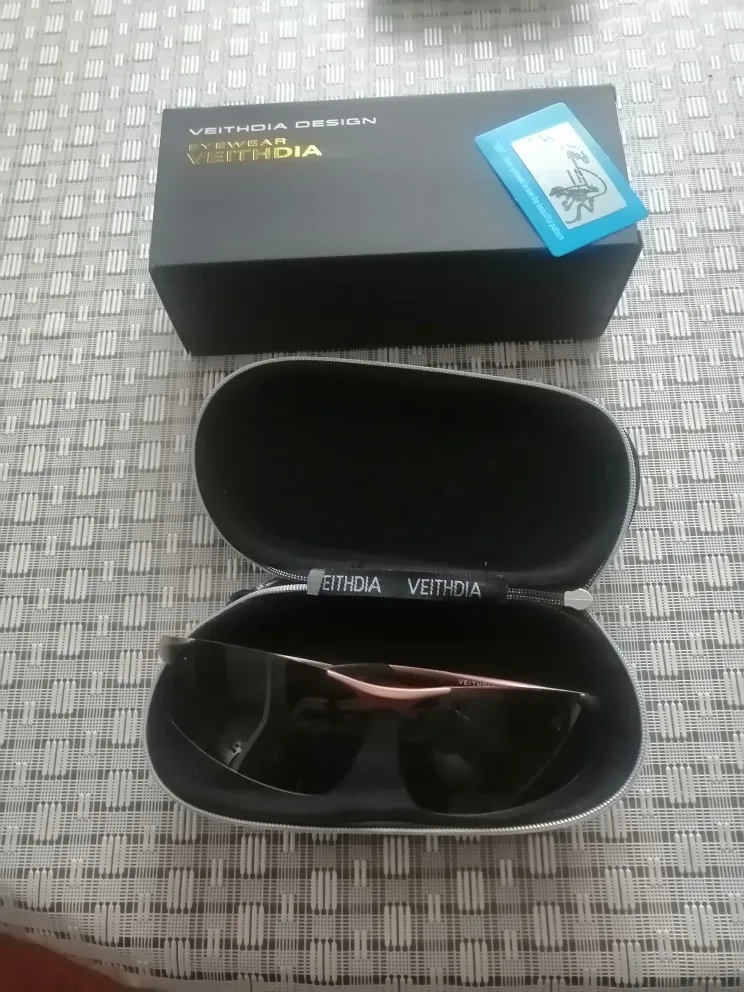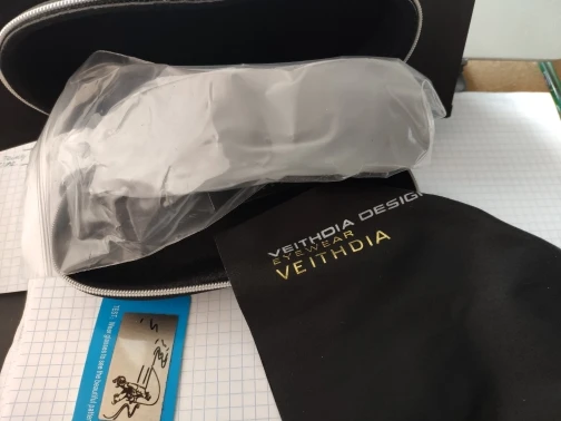 товар пришел в Барнаул за пару недель! Такой быстрой доставки недорогого товара в наше захолустье никогда не было (месяцами идет) Упакован на славу, внутри почтовой картонной коробки точно такого же размера с крохотным зазором - фирменная коробка VEITHDIA . В ней в целофановом пакете -футляр. Внутри футляра в целофановом пакете очки и подарок - автомобильный держатель для очков. Я так понял, это продавец положил как бонус, т.к. в описании и в др. отзывах про него ничего не встретил. Качество футляра и самих очков - на отлично! Линзы поляризованные, что легко проверить прилагаемой тест-картинкой. Покупкой доволен. Осталось проверить ее в деле. Постараюсь не забыть и дополнить фотоотчетом