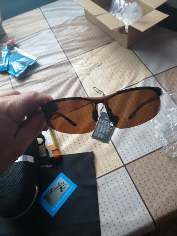 крутейшие качественные очки, пришли с жёсткими чехлом для очков, тест полоска на поляризацию лежит но что-то я на ней вообще ничего не разглядел.