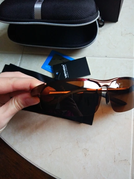 Очки качественные, заказывал другие фирмы, даже немного дороже - эти на голову выше. Классный металлический корпус, поляризация ахренительная. Также доводчики присутствуют. Советую! (Брал коричневые для охоты на рыбу с рогаткой)