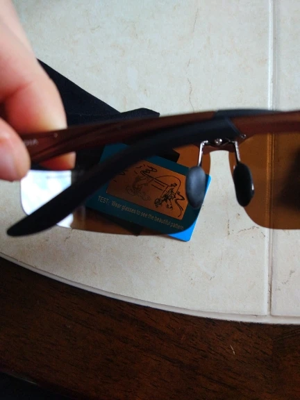 Классные очки, в комплекте идёт маленькая металлическая пластинка с гравировкой для тестирования поляризации, так вот без очков я гравировки и не заметил даже. Очки супер!