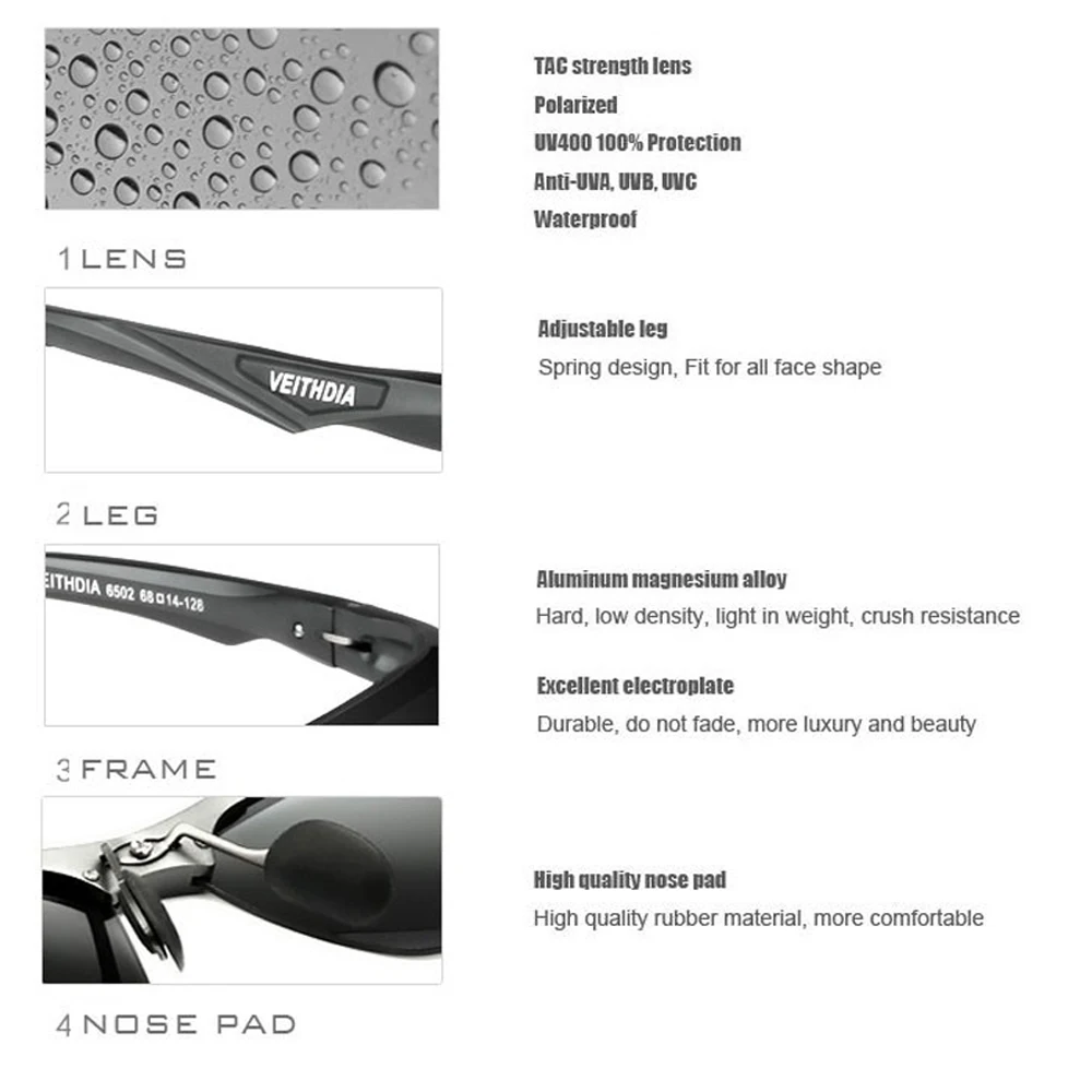 Мужские солнцезащитные очки VEITHDIA, из алюминиево-магниевого сплава с поляризационными зеркальными стеклами, улучшенная видимость ночью, модель 6502, 2019