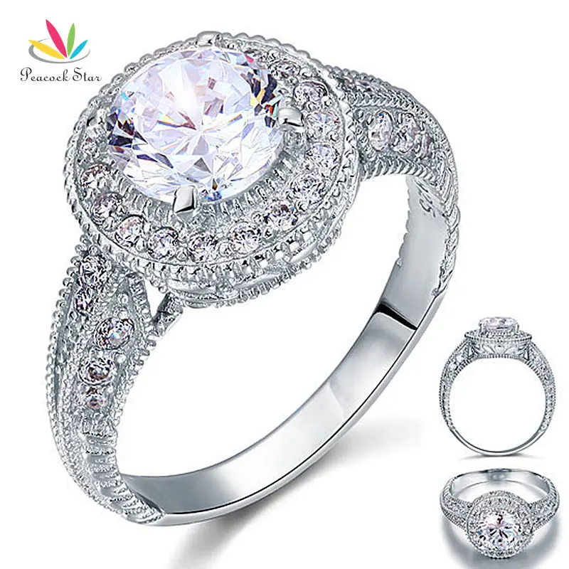 Павлин звезда Винтаж Стиль 2 карат цельное серебро 925 пробы Серебряное обручальное кольцо Обручение кольцо CFR8090