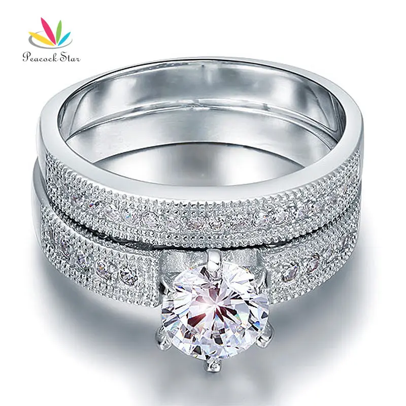 Павлин звезда Винтаж Стиль 1,25 Ct Solitaire стерлингового серебра 925 2-Pc Свадебные Обручение кольцо свадебный набор CFR8096