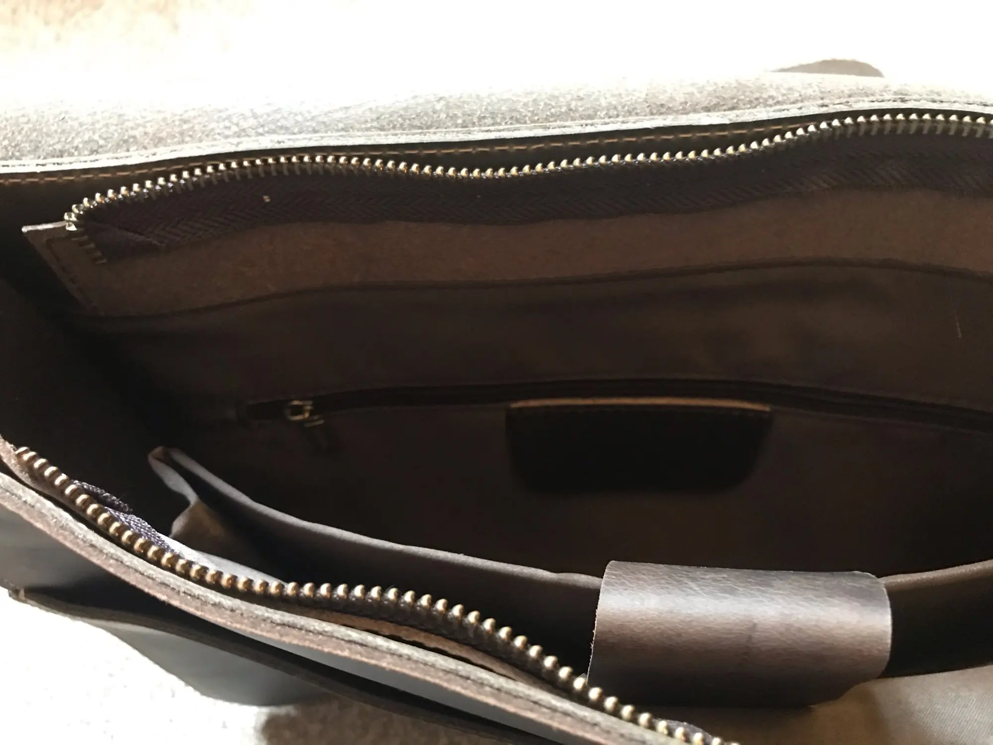 Хорошая толстая кожа с хорошими швами, но она была довольно сухой и воняет в первые несколько недель. После того, как некоторые кожаные Бальзамы и проветривают, они предназначены для ежедневного использования и должны удерживаться в течение многих лет. Подходит для ноутбука 13 дюймов, Ipad, зарядных устройств и некоторых дополнительных элементов.