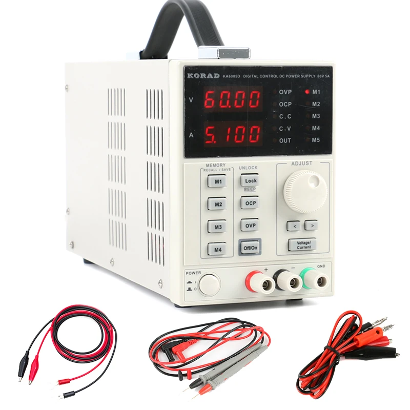 Серия P может быть подключена к компьютеру с функцией дистанционного управления (интерфейс USB RS232) Название продукта DC программируемый источник питания Описание товара Особенности Программируемая мощность 10 мВ/1 мА высокая точность и разрешение Низкий уровень шума и пульсации CV / CC заданное напряжение и режим постоянного тока Высокая надежность OCP, OVP, защита любого набора Встроенный набор сохраняемых параметров Выходной переключатель управления Мощность и функция памяти Блокировка клавиатуры для предотвращения неправильного использования Хранение данных через USB и функции автоматического управления Дополнительная квота RS232, интерфейс USB Легко заменить традиционное цифровое питание Точно генерирует требуемое напряжение и ток Блок питания серии KA для обеспечения разрешения от широкого диапазона выходного напряжения 30-60 в 10 мВ и 10 мА Профессиональный дизайн источника питания с интуитивно понятной работоспособностью Простое и интуитивно понятное управление, быстрый и точный выбор напряжения и тока 5 пользовательских программируемых предустановленных настроек Просто нажмите кнопку, чтобы вызвать и сохранить область, чтобы открыть пользователю для хранения данных и сохранения пользовательских настроек Для предотвращения повреждения нагрузки Числовая Защита от перенапряжения и перегрузки по току, может быть установлена для предотвращения превышения порога регулятора напряжения. Кнопки блокировки панели, функция блокировки клавиатуры для предотвращения нежелательных результатов при тестировании ключей. Приложения Исследования и разработки, контроль качества и тестирование, автоматизированное тестирование производственной линии, школьных лабораторий и технического обслуживания. Технические параметры Диапазон напряжения/тока 0-30 в 0-60 в/0-2 а 0-3 а 0-5 А Регулировка нагрузки ≤ 0.01% + 2 мВ напряжение/ток ≤ 0.1% + 5 мА Линейный регулятор ≤ 0.01% + 3 мВ напряжение/ток ≤ 0.1% + 3 мА Установите разрешение Напряжение: 10 мВ/ток 1 мА Точность настройки (25 + - 5) ≤ 0.5% + 20 мВ напряжение/ток ≤ 0.5% + 10 мА Пульсация (20 Гц-20 м) Напряжение ≤ 2 мvrms/ток: ≤ 5mArms Температурный коэффициент ≤ 100ppm + 10 мВ напряжение/ток ≤ 100ppm + 5 мА Разрешение считывания Напряжение 10 мВ/ток: 1 мА Коэффициент температуры возврата Напряжение ≤ 100ppm + 10 мВ/ток ≤ 100ppm + 5 мА Время реакции (10% от номинальной нагрузки) Напряжение ≤ 100 мс/ток ≤ 100 мс Рабочая среда Использование в помещении Высота ≤ 2000 м 0 ~ 40 температура окружающей среды ≤ 80% Относительная влажность Интерфейс Дополнительные интерфейсы RS232, USB Фитинг Руководство, шнур питания (1,2 м), кабель USB (1,2 м) Вес и размеры 4,3 кг/110 (Ш) * 156 (В) * 260 (г) Среда хранения Температура окружающей среды-10 - 70 ≤ 70% относительная влажность