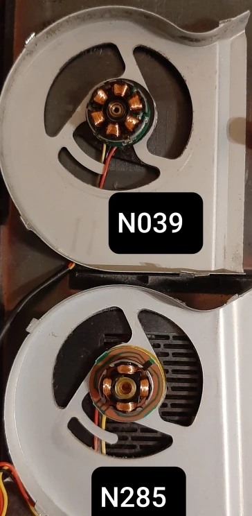 выглядит хорошо, как лимонад со всеми пленками, мягкими элементами. поставил, дует хорошо, на бусте обороты как у оригинала, очень доволен. доставили быстро, продавец молодец, большой респект. в Москве нигде не смог найти именно 039, этот продукт пришёл правильный! p.s если вы думаете брать n285 или этот n039, берите n039, хотя в магазинах мне говорили, что они идентичны, но это не так, внутри и абсолютно разные и дуют по-разному, n285 не справляется с охлаждением моего msi ge70 (фото отличий прикрепляю).